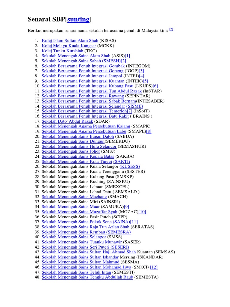 53 buah SBP aliran sains 12 SBP aliran agama dan 3 SBP aliran Ulul Albab. Spreadsheet Senarai Sekolah Rendah dan Menengah 31 Mei 2019. Since 2008 SBPs are directly administered by Fully Residential and Excellent Schools Management Division Ministry of Education.